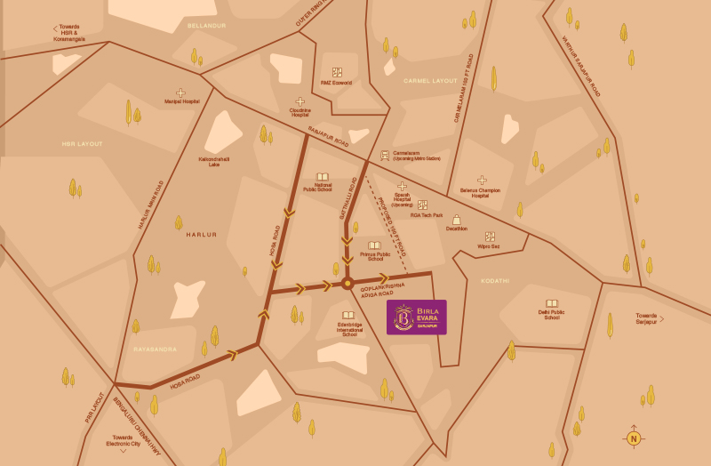 Birla Evara is thoughtfully crafted to be an urban oasis of tranquility and serenity, seamlessly blending natural elements with modern living. Nestled amidst the lush green landscapes of Sarjapur, this exquisite development offers expansive landscaped courts and shaded spaces, ensuring comfort throughout the year.